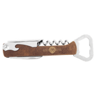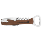 Laserable Leatherette Wrap: The 5 1/4" Wine Bottle Opener is encased in a stylish and customizable laserable leatherette wrap. Personalize it with engravings, names, or special messages to make it uniquely yours or create a thoughtful gift for wine-loving friends.